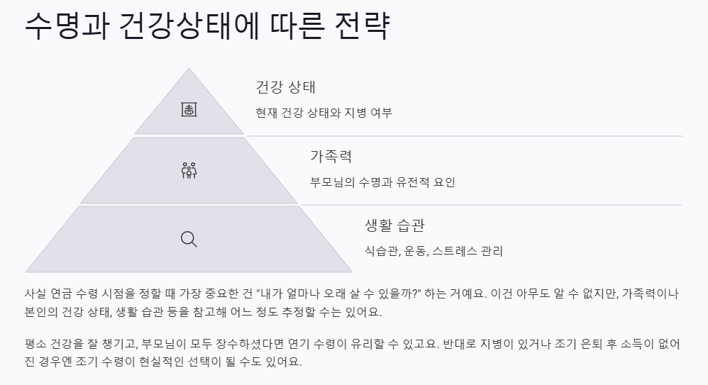 사실 연금 수령 시점을 정할 때 가장 중요한 건 "내가 얼마나 오래 살 수 있을까?" 하는 거예요. 이건 아무도 알 수 없지만, 가족력이나 본인의 건강 상태, 생활 습관 등을 참고해 어느 정도 추정할 수는 있어요.
