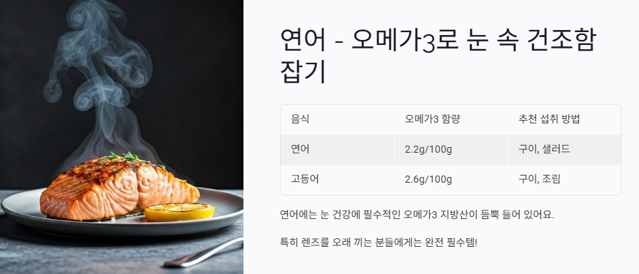 연어 – 오메가3로 눈 속 건조함 잡기