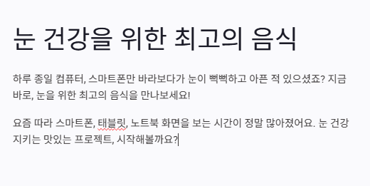 안녕하세요, 여러분! 요즘 따라 스마트폰, 태블릿, 노트북 화면을 보는 시간이 정말 많아졌잖아요. 저도 요 며칠 동안 야근하고 나니까 눈이 뻑뻑하고, 초점도 잘 안 맞는 느낌이 들더라구요. 그래서 "이러다 큰일 나겠다" 싶어서 눈 건강에 좋은 음식들을 찾아봤어요. 같이 저랑 눈 건강 지키는 맛있는 프로젝트, 시작해볼까요?