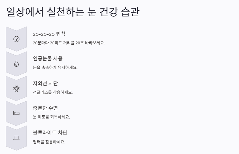 음식만 잘 챙긴다고 끝이 아니죠! 평소 생활습관에서도 눈 건강을 챙길 수 있어요. 간단하지만 실천하면 효과 확실한 꿀팁들, 함께 알아볼게요.