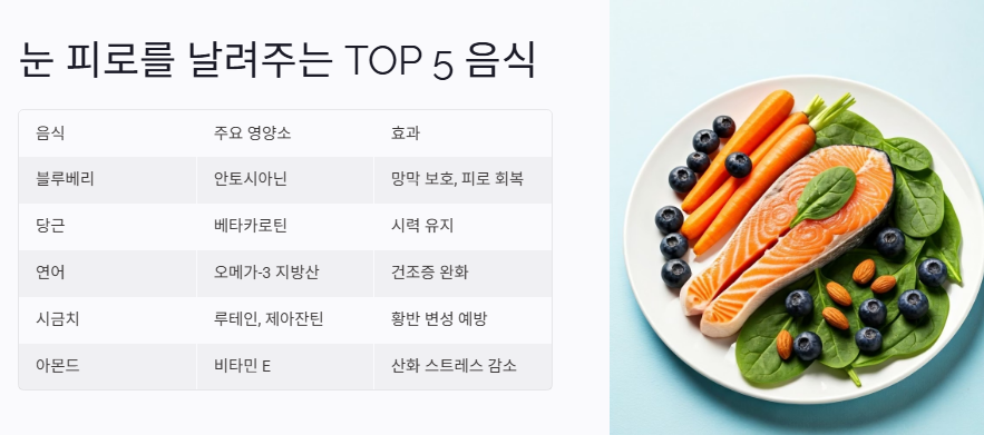 | 블루베리 | 안토시아닌 | 망막 보호, 피로 회복 |